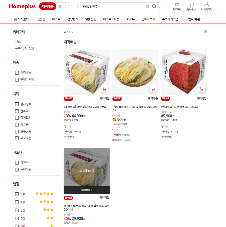실제로 농협몰과 롯데온에서는 “예약배송”이라는 태그가 붙은 절임배추 상품이 운영 중이고, 오아시스몰은 지정일 출고 시스템을 갖추고 있어요.