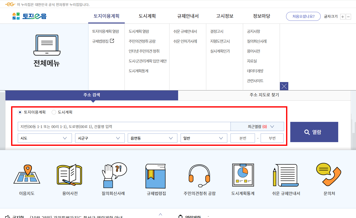 - 지번 또는 주소 검색