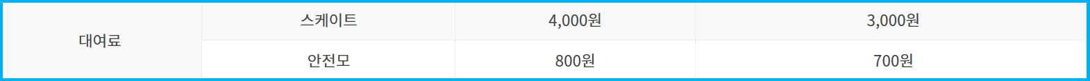 - 스케이트화 대여료: 개인 4,000원 / 단체 3,000원