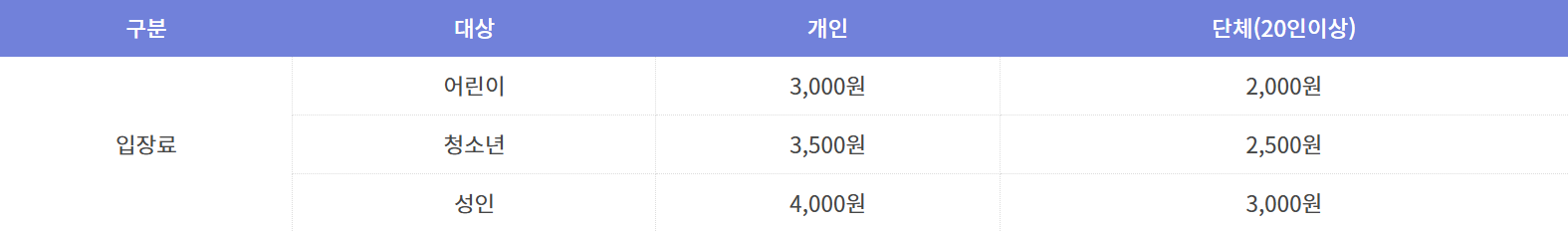 - 성인: 개인 4,000원 / 단체 3,000원